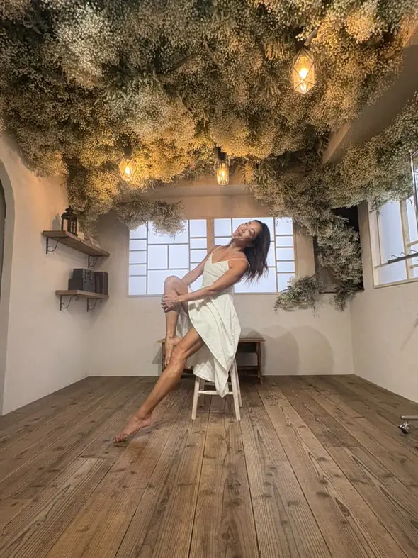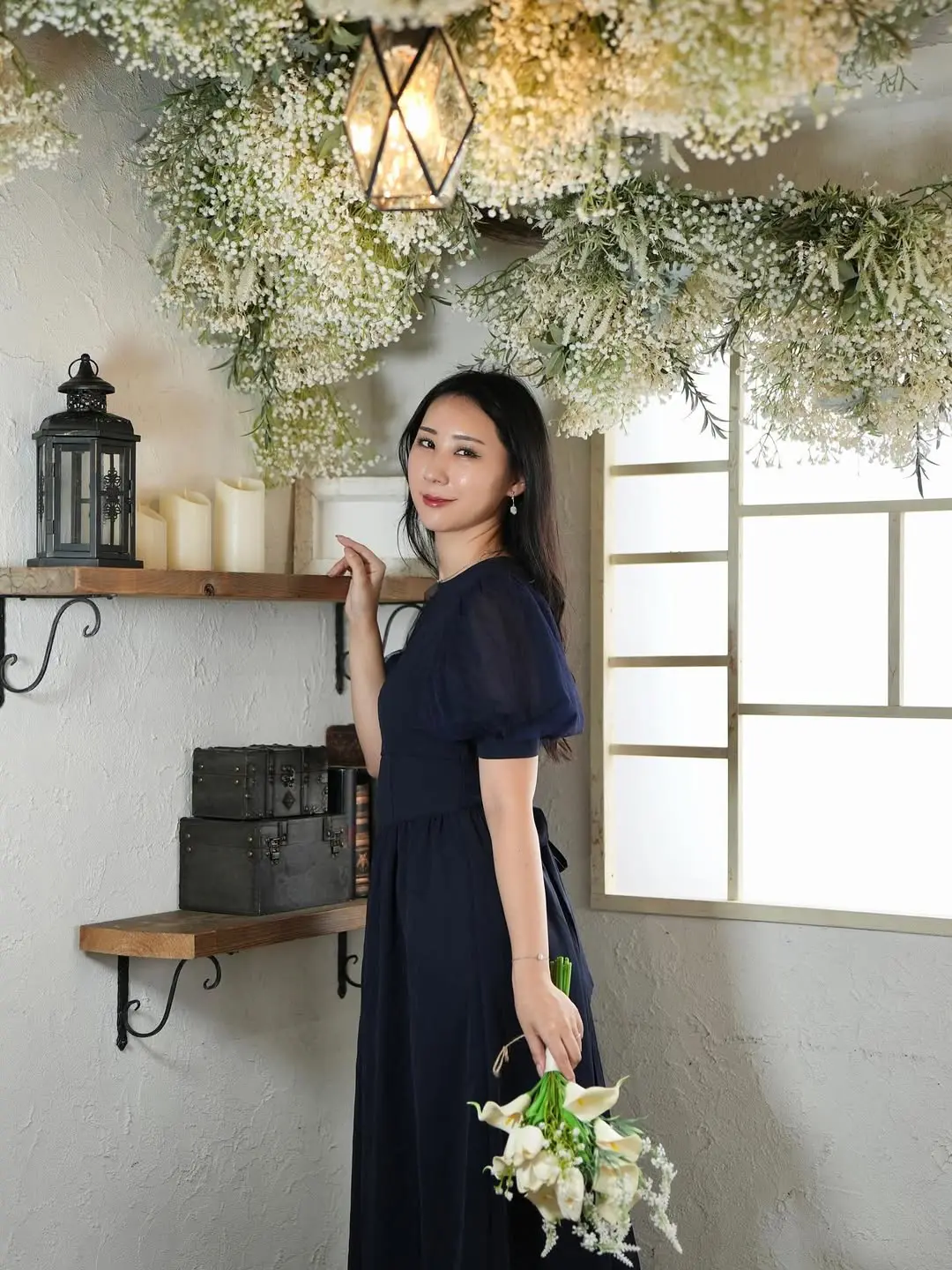 背景だけでなく、手持ちのアイテムや床材にもこだわっています。10組を超える手持ち用のドライフラワーをご用意しており、床材はカスミソウエリアにはカフェ板・その他は全て大判600角総タイル張り。2人がけのアンティークベンチやチャーチチェア。ヴィンテージチェア・アルミチェアなどもご用意があるので様々な撮影シーンに対応しています。
